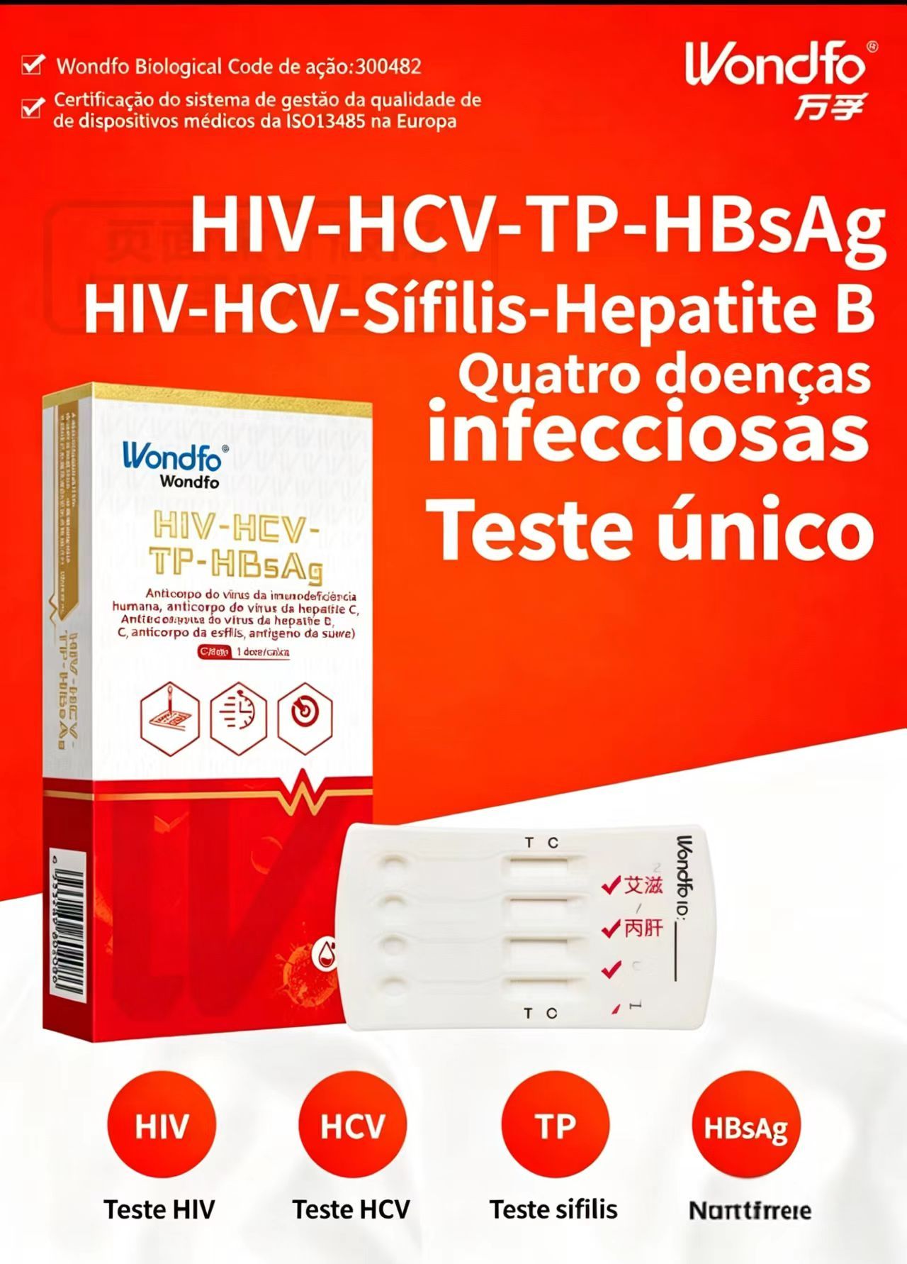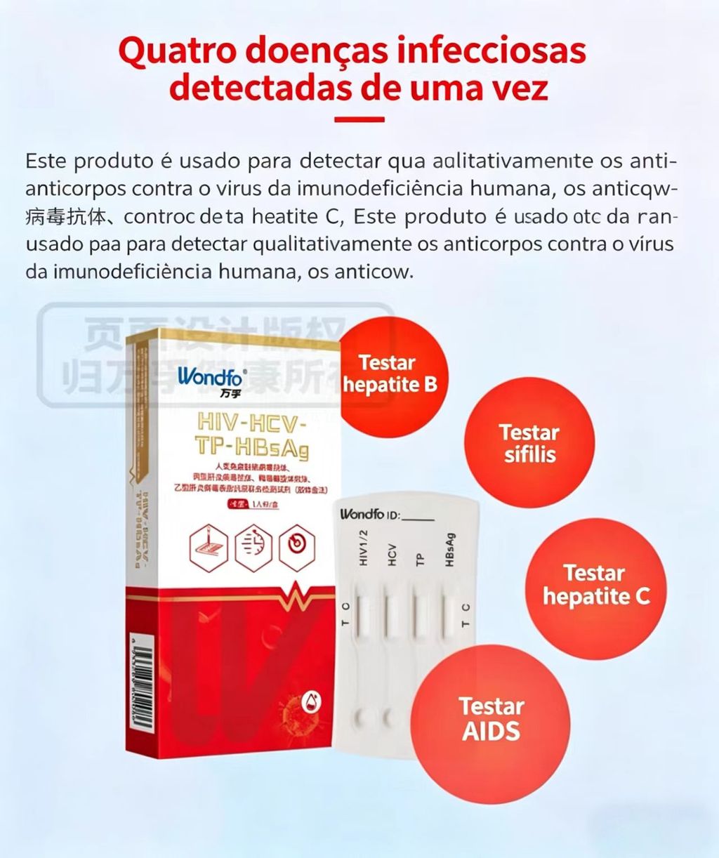 Kit de Teste Rápido Wondfo HIV-HCV-TP-HBsAg | Teste Domiciliar para HIV, Hepatite C, Sífilis e Hepatite B, Certificado ISO13485